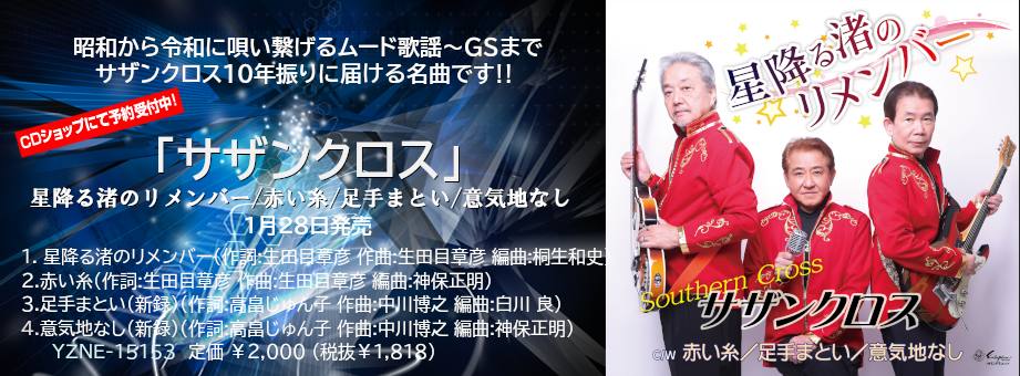 ニューリリース 「リリース情報」2026年1月28日発売 サザンクロス「星降ふる渚のリメンバー/赤い糸/足手まとい/意気地なし」