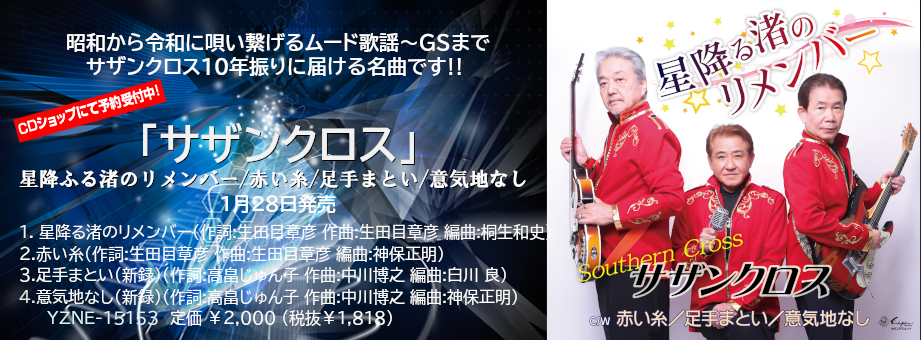 ニューリリース 「リリース情報」2026年1月28日発売 サザンクロス「星降ふる渚のリメンバー/赤い糸/足手まとい/意気地なし」